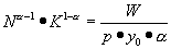 daß sich auf dem Gütermarkt kein Preis einstellt, der zu dem Reallohnsatz w0 führt.
